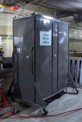 Bruce Power and NPO engineered a 60” x 24” x 80” tall modular LDWA shield booth. The shield booth walls were manufactured with 1” thick lead encased in coated steel, providing approximately 85% attenuation from a Co-60 source. The booth bench was designed to easily fit 2-3 personnel. To aid in maneuvering the booth, high-capacity casters, swivel hoist rings, and forklift pockets were incorporated.